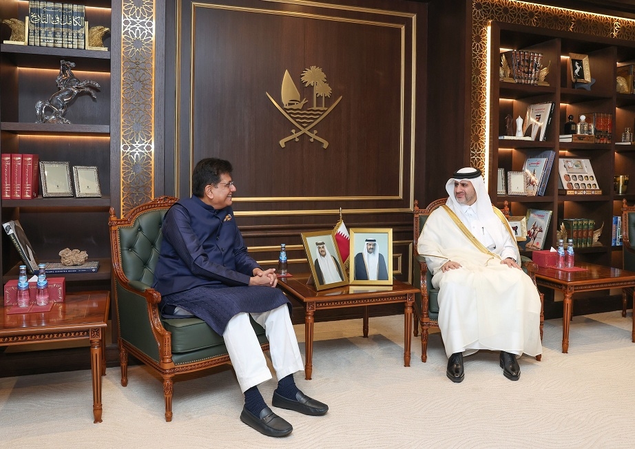 محافظ مصرف قطر المركزي يجتمع مع وزير التجارة والصناعة الهندي