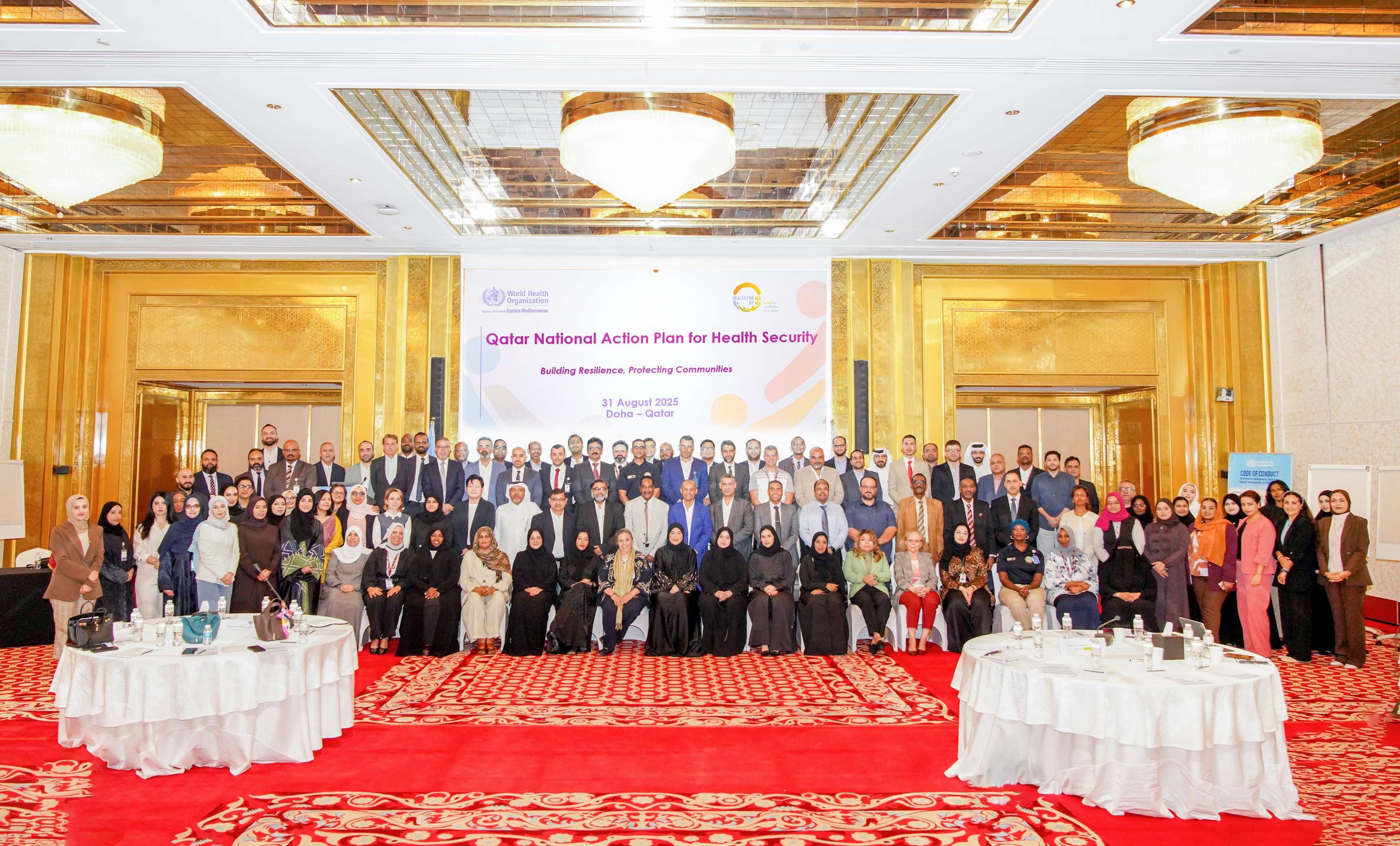 جمعت الورشة ممثلين من الجهات الحكومية، ومقدمي الرعاية الصحية، والأوساط الأكاديمية، والمجتمع المدني، والمنظمات الشريكة بهدف تعزيز قدرات قطر على الاستعداد والاستجابة لحالات الطوارئ الصحية.