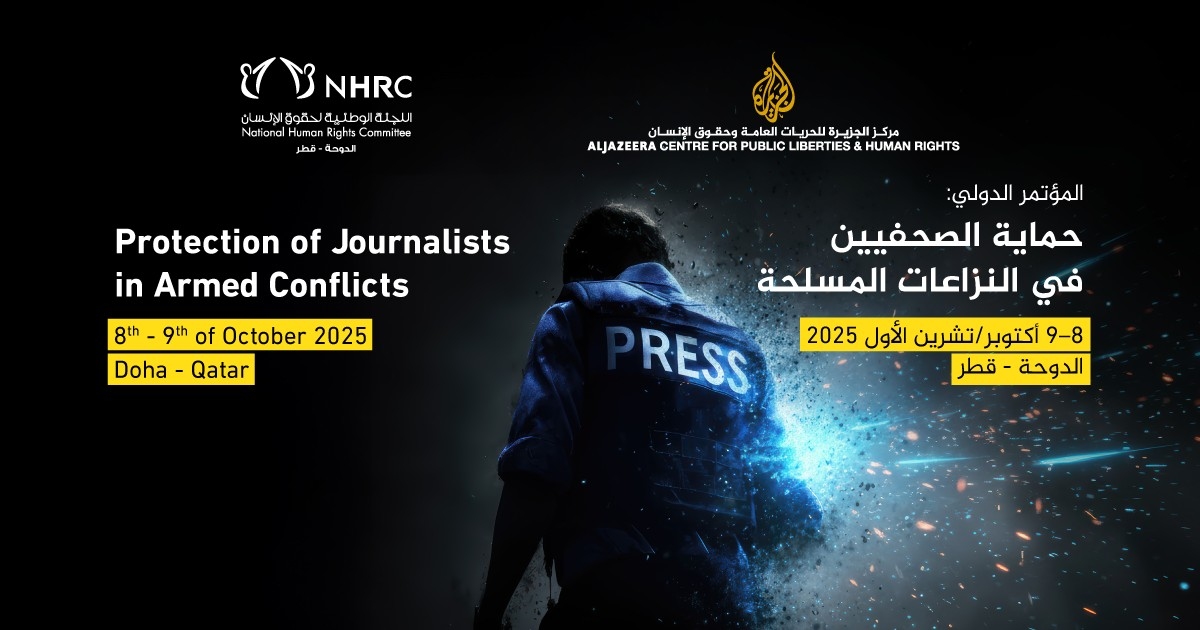 أعلنت اللجنة الوطنية لحقوق الإنسان، ومركز الجزيرة للحريات العامة وحقوق الإنسان بشبكة الجزيرة الإعلامية، عن تنظيم مؤتمر دولي حول حماية الصحفيين في النزاعات المسلحة، خلال يومي 8 و9 أكتوبر الجاري، بمشاركة واسعة من منظمات دولية وإقليمية معنية بتعزيز حرية الصحافة وحماية الصحفيين.