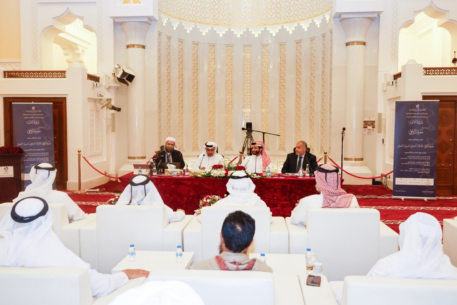 وشهدت الندوة حضور سعادة السيد غانم بن شاهين بن غانم الغانم وزير الأوقاف والشؤون الإسلامية، ومشاركة نخبة من أساتذة كلية الشريعة والدراسات الإسلامية بجامعة قطر، وعدد من الباحثين والمختصين.