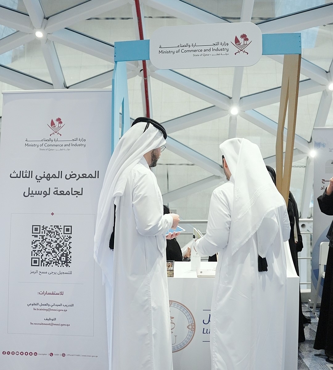واستعرضت الوزارة، خلال مشاركتها في المعرض المهني الثالث الذي تنظمه جامعة لوسيل، برامجها ومبادراتها التدريبية الموجهة للطلبة والخريجين، لتعريفهم بالفرص المهنية المتاحة لديها وباختصاصات قطاعاتها المختلفة، إلى جانب تسليط الضوء على دورها في دعم التنمية المستدامة وتعزيز تنافسية الاقتصاد الوطني.