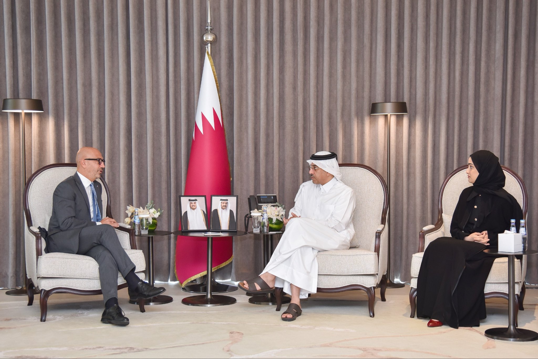 كما اجتمع سعادة الدكتور علي بن صميخ المري وزير العمل مع السيد فرانشيسكو دوفيديو مدير مكتب منظمة العمل الدولية في قطر.