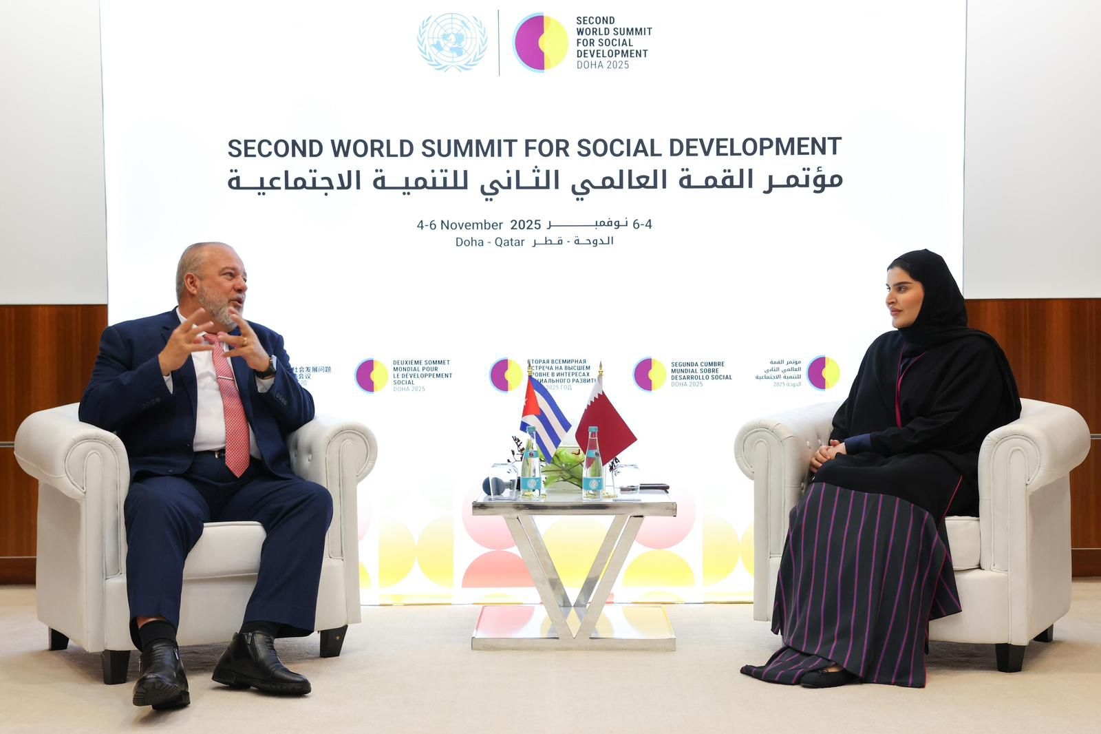 اجتمع دولة السيد مانويل ماريو كروز رئيس وزراء جمهورية كوبا، اليوم الأربعاء، مع سعادة الدكتورة مريم بنت علي بن ناصر المسند وزير الدولة للتعاون الدولي، على هامش مؤتمر القمة العالمي الثاني للتنمية الاجتماعية، المنعقد حاليا بالدوحة.