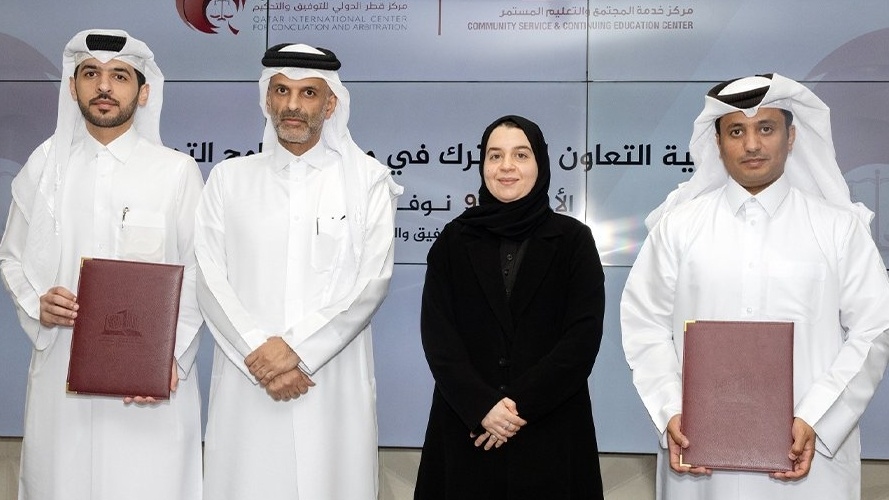 وقع مركز قطر الدولي للتوفيق والتحكيم بغرفة قطر ومركز خدمة المجتمع والتعليم المستمر بجامعة قطر اتفاقية تعاون، تهدف إلى تأطير التعاون المؤسسي بين الجانبين في مجال تنفيذ برامج تدريبية متخصصة في التحكيم والتوفيق والوساطة، بما يسهم في رفع كفاءة المحكمين داخل دولة قطر، وتنمية الوعي المهني في آليات تسوية المنازعات بالطرق البديلة.