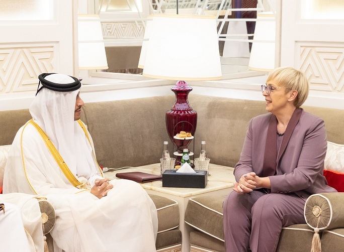 استقبلت فخامة الرئيسة الدكتورة ناتاشا بيرك موسار رئيسة جمهورية سلوفينيا، اليوم، معالي الشيخ محمد بن عبدالرحمن بن جاسم آل ثاني، رئيس مجلس الوزراء وزير الخارجية، وذلك بمقر إقامة فخامتها في الدوحة.