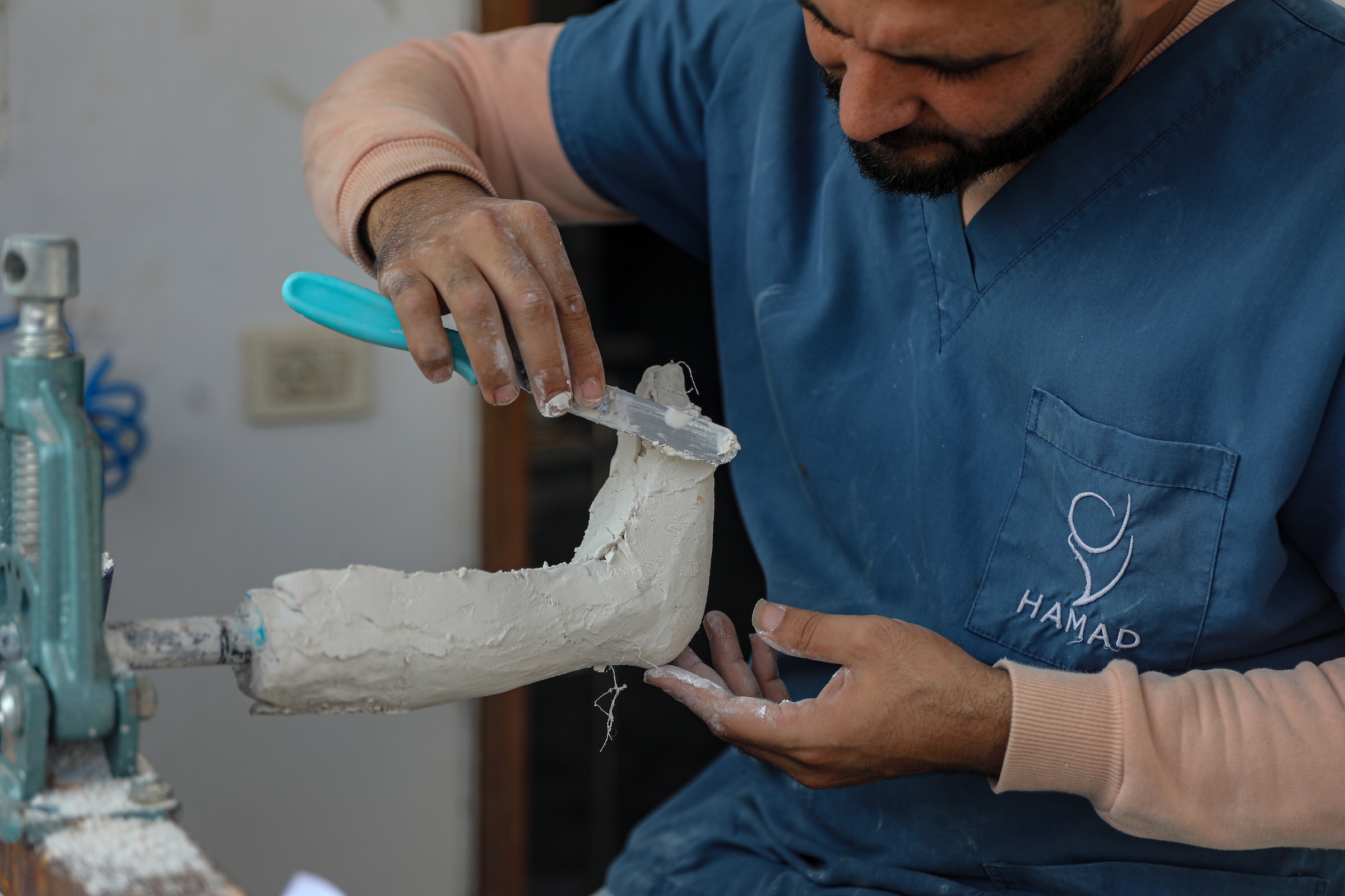 ويقول: "هناك شح شديد في هذه المواد، حيث لم تدخل قطاع غزة أي مواد تتعلق بالأطراف الصناعية منذ عام 2023، ولهذا نحن نواجه مشاكل كبيرة في تقديم خدمات الأطراف الصناعية، وبعد شهر أو شهرين على الأكثر سينفد المخزون من مواد الأطراف الصناعية".