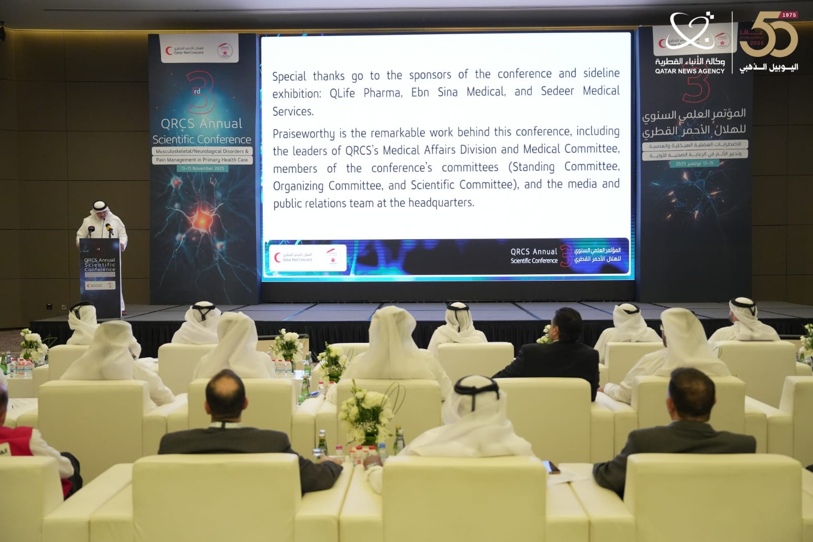 أطلق الهلال الأحمر القطري، اليوم، النسخة الثالثة من مؤتمره العلمي السنوي، والذي يستمر 3 أيام، تحت عنوان "الاضطرابات العضلية الهيكلية والعصبية وتدبير الألم في الرعاية الصحية الأولية".