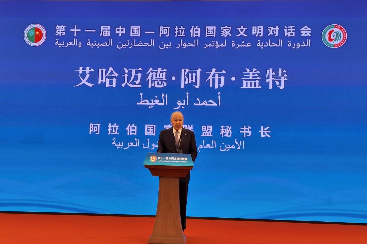 وقال أحمد أبوالغيط الأمين العام لجامعة الدول العربية، خلال الجلسة الافتتاحية إن المؤتمر يعد تجسيدا حيا لعمق الروابط التي تجمع حضارتين عريقتين قدمتا عبر التاريخ نموذجا فريدا للتفاعل الإيجابي والتعايش الخلاق، حيث كانت قوافل طريق الحرير التاريخي جسرا لم يقتصر دوره على تبادل السلع، بل كان ناقلا كذلك للأفكار والفلسفات والعلوم والفنون، بما أسهم في إثراء الحضارتين، وأضاف كذلك للتراث الإنساني العالمي المشترك.