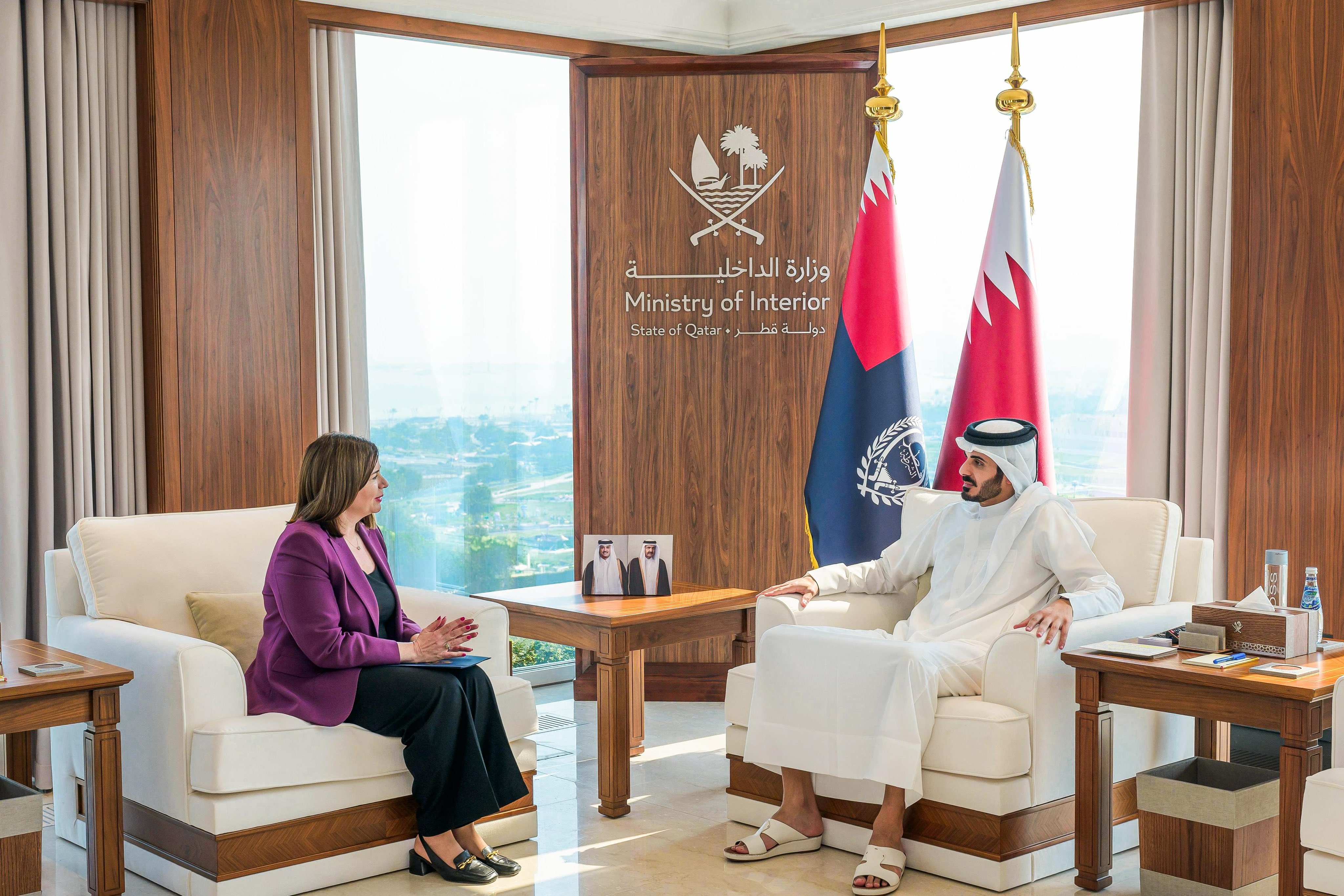 استقبل سعادة الشيخ خليفة بن حمد بن خليفة آل ثاني وزير الداخلية وقائد قوة الأمن الداخلي "لخويا"، سعادة السيدة ستيفاني التمان واينانز، القائم بالأعمال المؤقت بسفارة الولايات المتحدة الأمريكية الصديقة لدى الدولة.