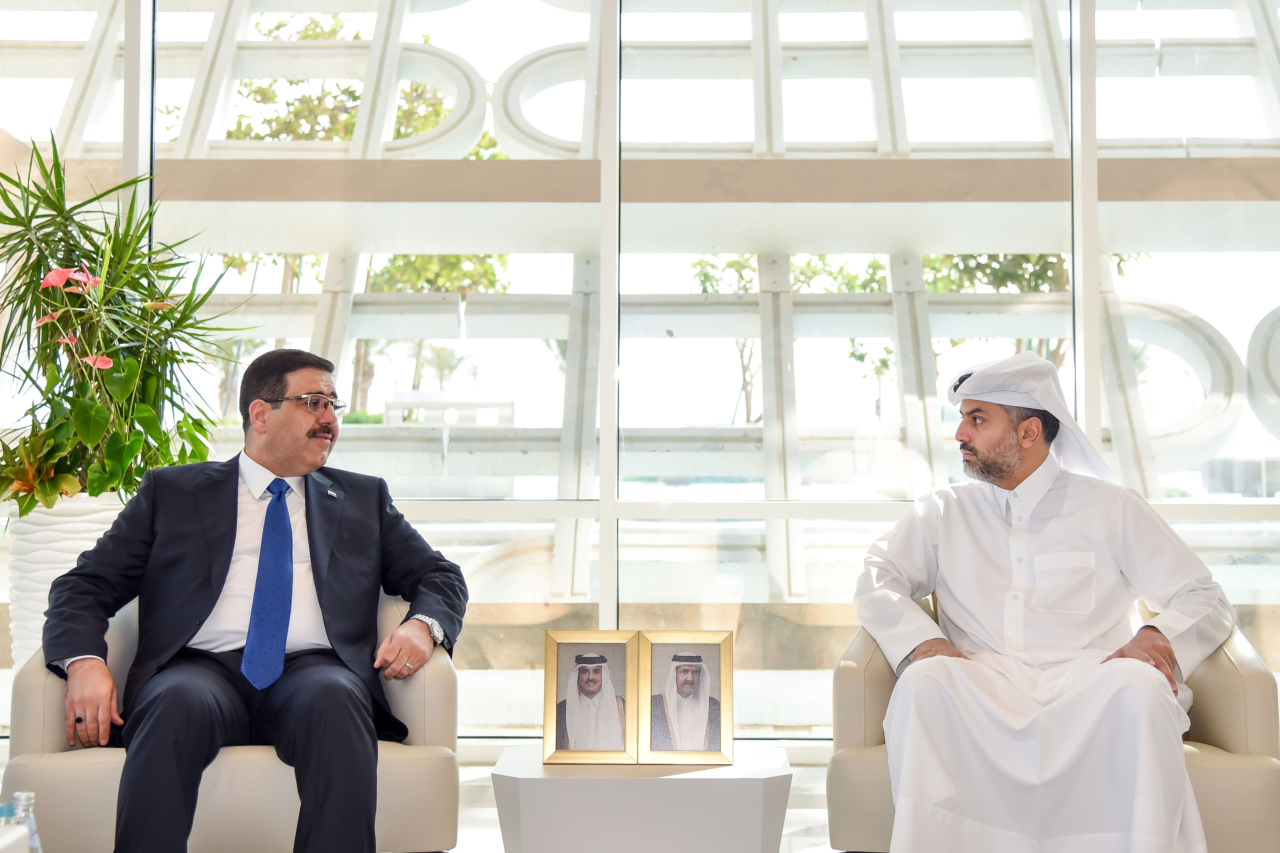 اجتمع سعادة الشيخ محمد بن حمد بن فيصل آل ثاني، الرئيس التنفيذي لهيئة المناطق الحرة، مع سعادة السيد أثير داود سلمان الغريري، وزير التجارة في جمهورية العراق، أثناء زيارته والوفد المرافق له لدولة قطر.