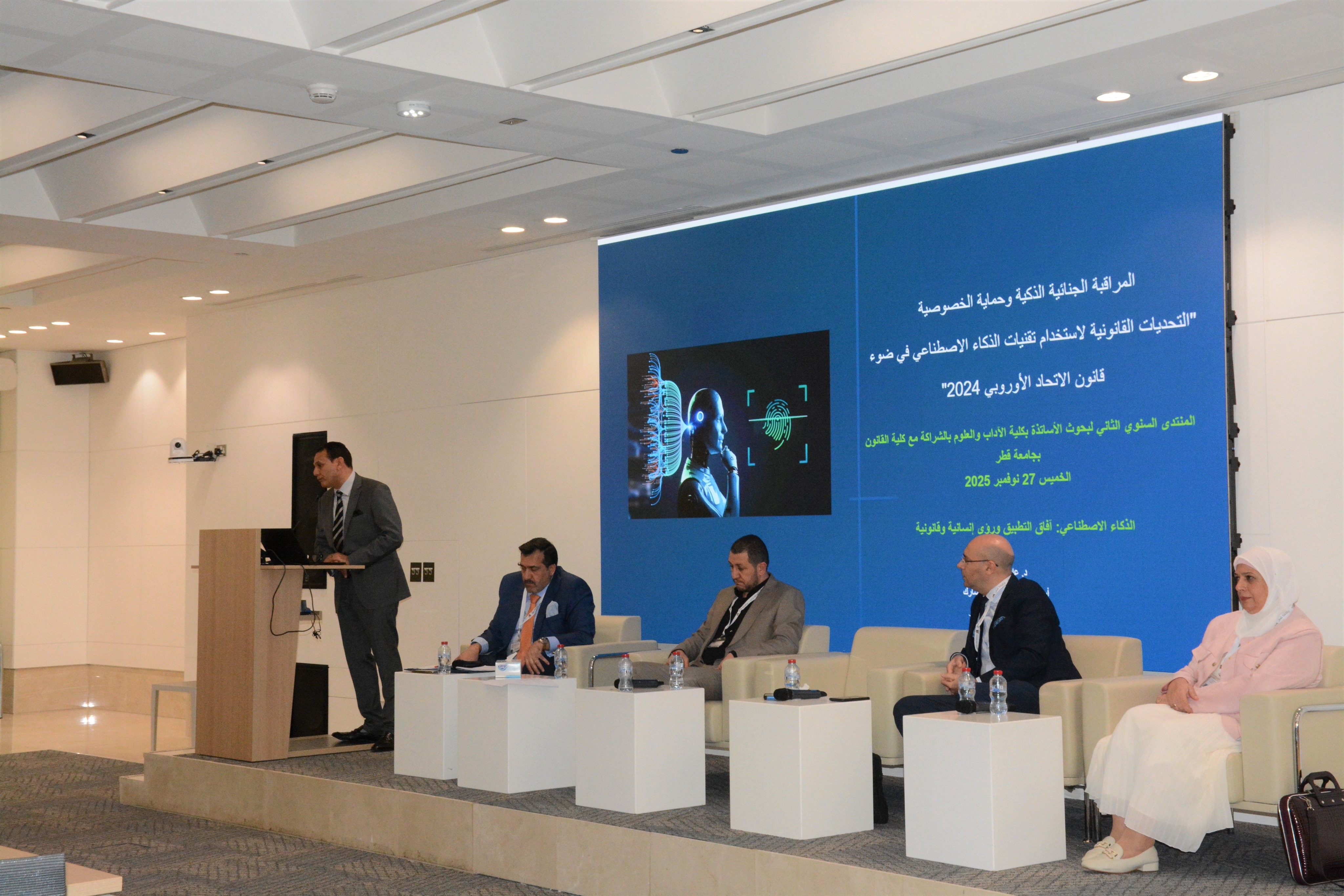 نظمت كلية الآداب والعلوم بجامعة قطر بالتعاون مع كلية القانون، المنتدى السنوي الثاني لبحوث الأساتذة، تحت عنوان: "الذكاء الاصطناعي: آفاق التطبيق ورؤى إنسانية وقانونية"، بمشاركة واسعة من أعضاء هيئة التدريس والباحثين من مختلف الأقسام العلمية والإنسانية والقانونية بالجامعة.