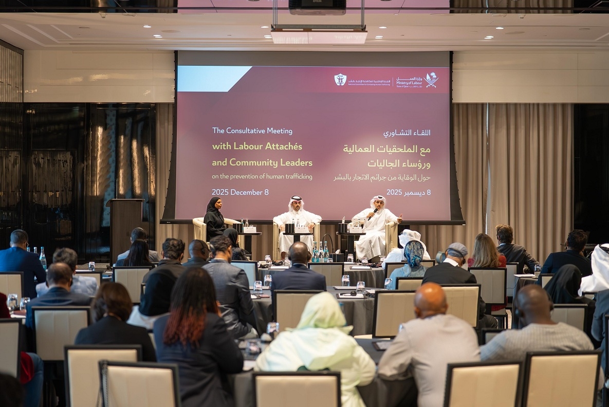 نظمت وزارة العمل، ممثلة في اللجنة الوطنية لمكافحة الاتجار بالبشر، اليوم، لقاء تشاوريا موسعا جمع عددا من الملحقيات العمالية ورؤساء الجاليات، بهدف تعزيز الشراكة مع الجهات الدبلوماسية والقنصلية وممثلي الجاليات، ودعم جهود الدولة المتعلقة بالوقاية من جرائم الاتجار بالبشر ورفع مستوى الوعي لدى العمال حيالها.