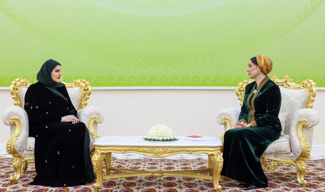 اجتمعت سعادة الدكتورة مريم بنت علي بن ناصر المسند وزير الدولة للتعاون الدولي، اليوم، مع سعادة السيدة أوغولجهان أتابايفا، النائبة المعنية بشؤون العلاج الطبي لرئيس صندوق "قربانقلي بردي محمدوف" الخيري، وذلك خلال زيارة سعادتها إلى تركمانستان.