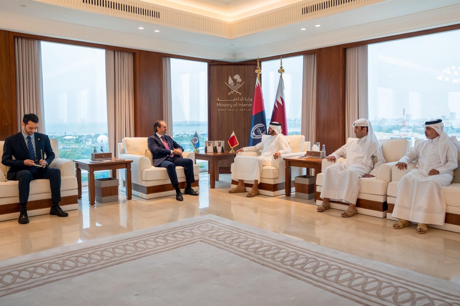 استقبل سعادة الشيخ خليفة بن حمد بن خليفة آل ثاني، وزير الداخلية وقائد قوة الأمن الداخلي "لخويا" - رئيس اللجنة الأمنية، سعادة السيد فالديسي أوركيزا، الأمين العام للمنظمة الدولية للشرطة الجنائية (الإنتربول).
