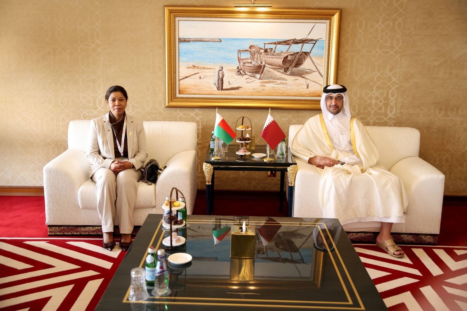 اجتمع سعادة السيد إبراهيم بن علي المهندي، وزير العدل ووزير الدولة لشؤون مجلس الوزراء، مع سعادة السيدة فانيريسوا إيرنايفو، وزيرة العدل في جمهورية مدغشقر، وذلك على هامش أعمال مؤتمر الدول الأطراف في اتفاقية الأمم المتحدة لمكافحة الفساد المنعقد في الدوحة.