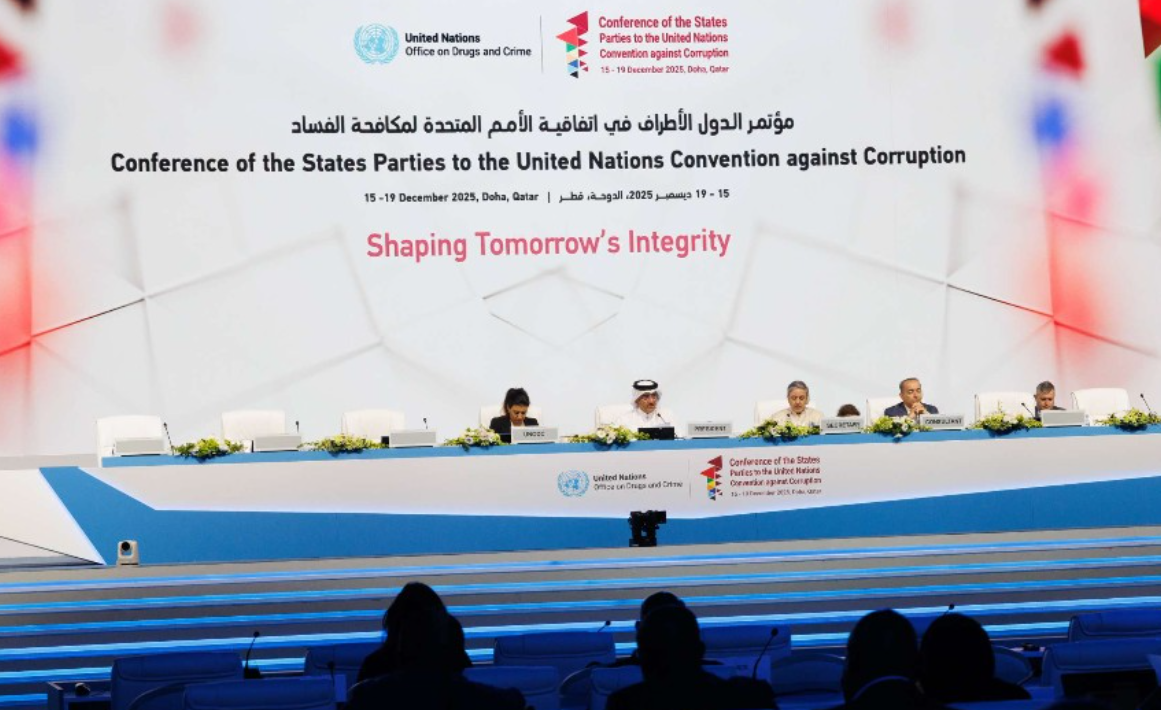 جاء ذلك خلال الجلسة الرئيسية لليوم الثالث لمؤتمر الدول الأطراف باتفاقية الأمم المتحدة المنعقد بالدوحة، والتي ترأسها سعادة السيد حمد بن ناصر المسند، رئيس هيئة الرقابة الإدارية والشفافية، ورئيس الدورة الحادية عشرة للمؤتمر.