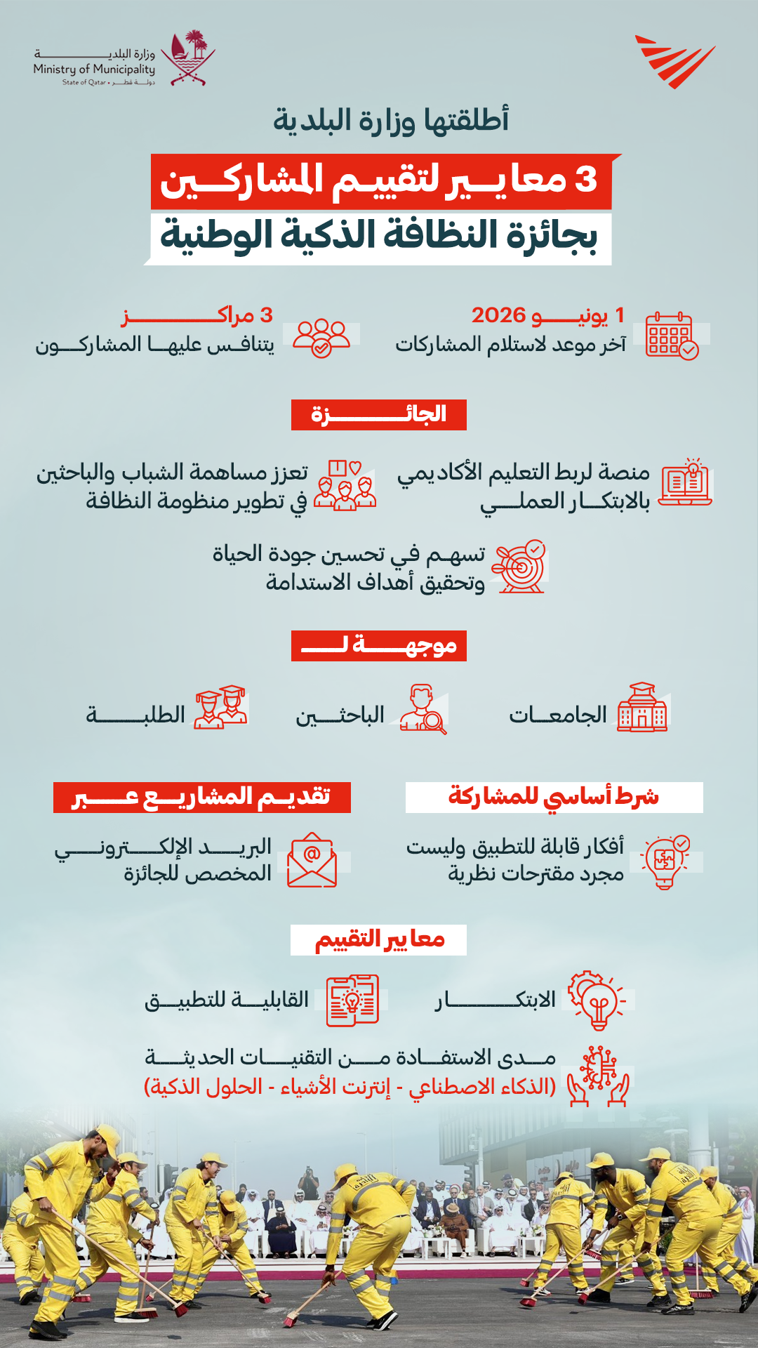 3 معايير لتقييم المشاركين في جائزة النظافة الذكية الوطنية