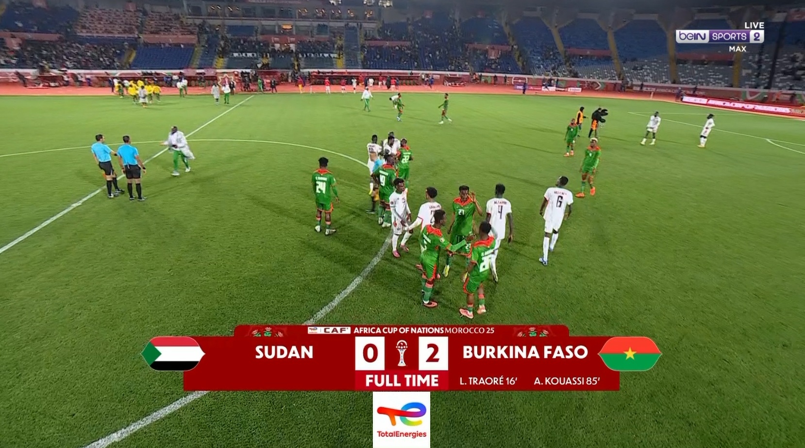 تغلّب منتخب بوركينا فاسو على نظيره المنتخب السوداني بهدفين دون ردّ اليوم الأربعاء في الجولة الثالثة من مباريات المجموعة الخامسة ضمن منافسات كأس أمم إفريقيا، توتال إنيرجيز، المغرب 2025.