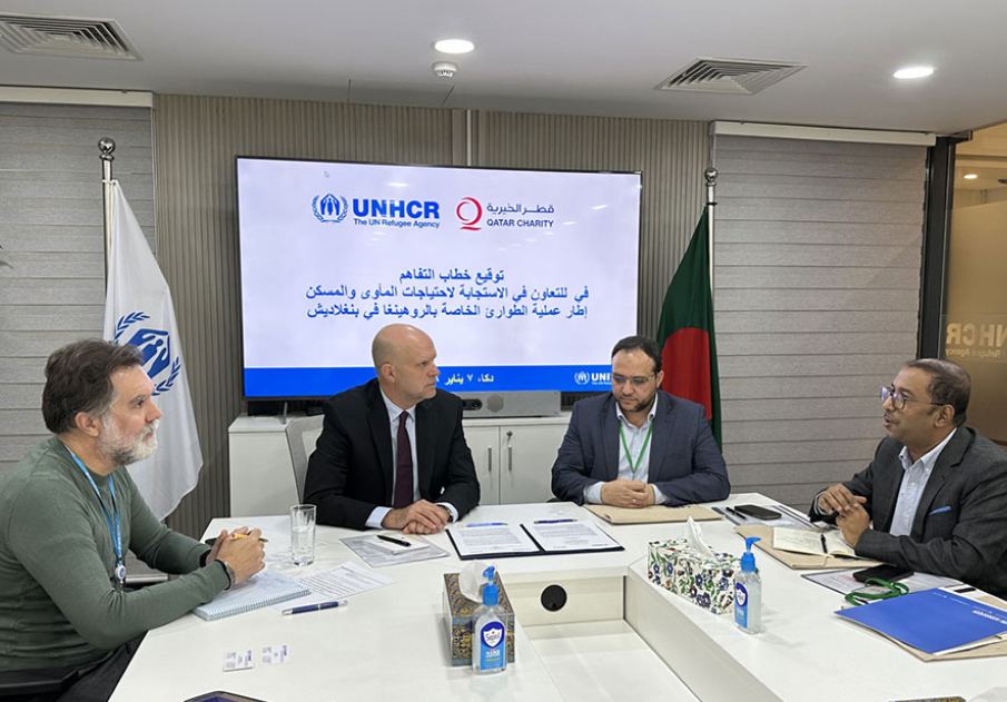 وقعت قطر الخيرية، والمفوضية السامية للأمم المتحدة لشؤون اللاجئين مذكرة تفاهم مرفقة بملحق لمشاركة البيانات، بهدف تعزيز الجهود المشتركة في تلبية الاحتياجات الإنسانية للاجئي الروهينغا في بنغلاديش.