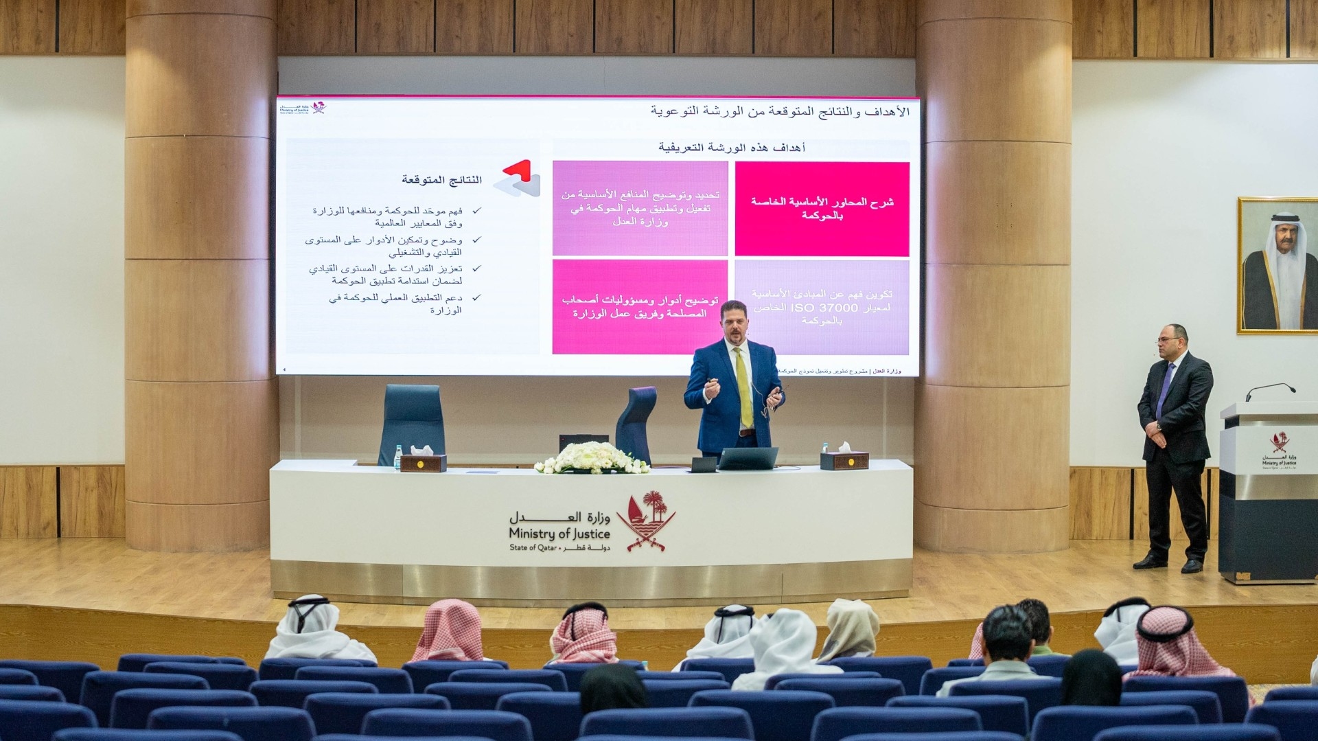 وتأتي هذه الورشة، في إطار جهود وزارة العدل الرامية إلى تطوير بيئة العمل المؤسسي، وترسيخ ممارسات الحوكمة، وبناء القدرات المؤسسية بما يسهم في تحقيق الأهداف الاستراتيجية للوزارة.