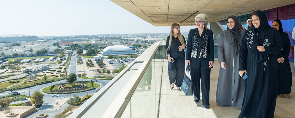 واطّلعت سعادتها خلال الزيارة على عرض تعريفي حول مؤسسة قطر والمدينة التعليمية من شرفة الطابق الثامن لمبنى 2015، المقرّ الرئيسي للمؤسسة، حيث التقت بعدد من ممثلات وممثلي مؤسسة قطر المختصين في مجالي التعليم العالي والتعليم ما قبل الجامعي.
