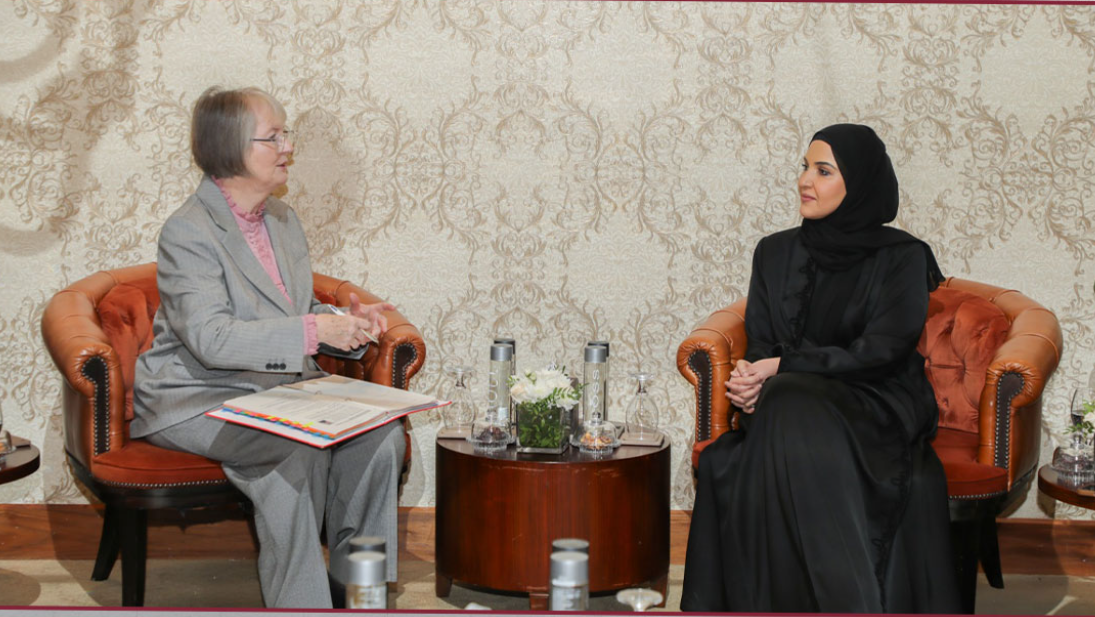 اجتمعت سعادة السيدة مريم بنت عبدالله العطية، رئيس اللجنة الوطنية لحقوق الإنسان، اليوم الثلاثاء، مع سعادة البارونة هاريت هارمن المبعوثة الخاصة للمملكة المتحدة لشؤون المرأة والفتيات، وذلك على هامش أعمال المنتدى الوطني الرابع لحقوق الإنسان، المنعقد حالياً بالدوحة.