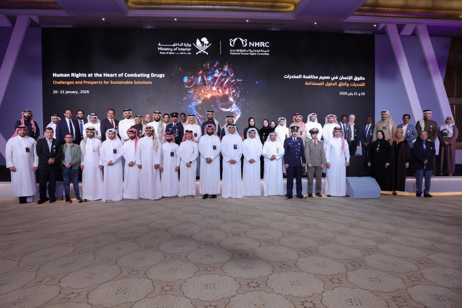 وبيّن أن التوصيات تضمنت إعداد وتنفيذ حملات توعوية مستمرة، ودورات تدريبية وورش عمل ومعارض فنية، بالشراكة ما بين اللجنة الوطنية لحقوق الإنسان ووزارة الداخلية والجهات المختصة الأخرى، لتعزيز الوعي المجتمعي، مع التركيز على تطوير قنوات التوعية وتصميم رسائل إعلامية هادفة للقضاء على الوصم وبناء جسور الثقة، مع الدعوة لتبني سياسات مالية مبتكرة لتعزيز الشفافية والمساءلة، وإعادة توجيه الموارد المتحصلة من العقوبات ذات الصلة، إلى برامج الوقاية والعلاج والإدماج.