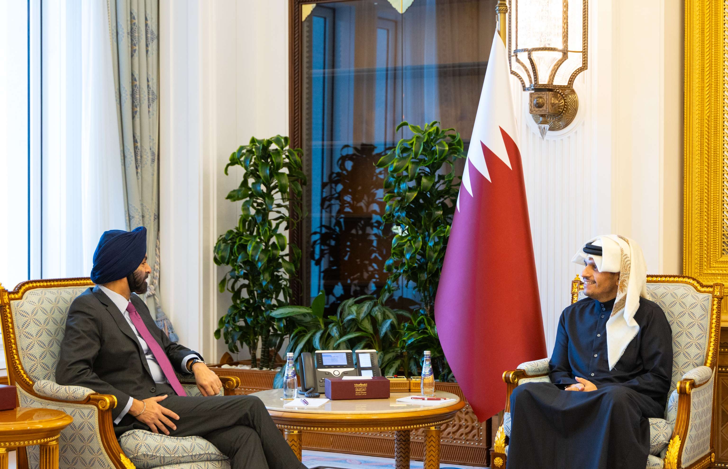 استقبل معالي الشيخ محمد بن عبدالرحمن بن جاسم آل ثاني رئيس مجلس الوزراء وزير الخارجية، اليوم الأحد، سعادة السيد أجاي بانغا رئيس مجموعة البنك الدولي، الذي يزور البلاد حاليا.