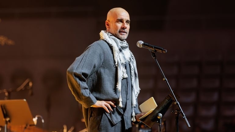 وحضر جوارديولا، مدرب فريق مانشستر سيتي الإنجليزي، الحفل الثقافي لدعم فلسطين الذي أقيم مساء الخميس تحت عنوان "Act x Palestine"، مرتديا الكوفية الفلسطينية، واستهل كلمته بتحية عربية قائلا: "السلام عليكم"، في مشهد لاقى تفاعلا واسعا داخل الأوساط الرياضية وعلى منصات التواصل الاجتماعي.