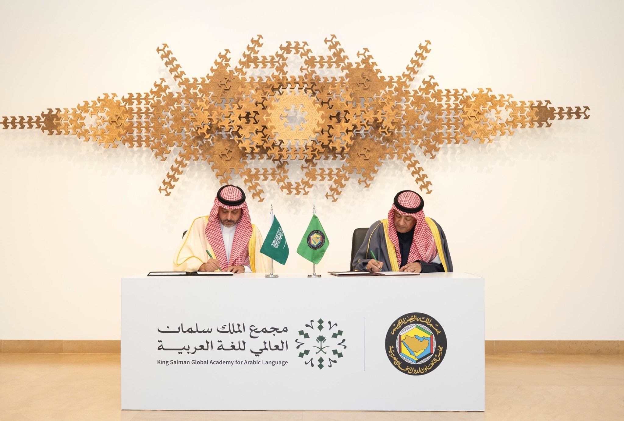 وقعت الأمانة العامة لمجلس التعاون لدول الخليج العربية ومجمع الملك سلمان العالمي للغة العربية مذكرة تفاهم، تهدف إلى تنسيق الجهود والتكامل في الأعمال والمشروعات العلمية وبناء ونشر وإقرار السياسات والمعايير اللغوية التي تخدم وتعزز اللغة العربية، والدراسات والبحوث المتصلة باللغة العربية والترجمة والتعريب، وتبادل الإصدارات العلمية والفكرية والثقافية بين الطرفين، وتنظيم المشروعات والفعاليات والبرامج العلمية والندوات والدورات التدريبية وحلقات النقاش.