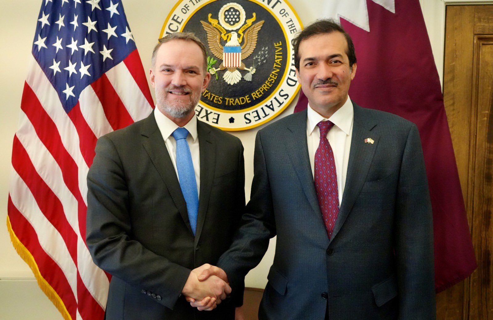 وتم خلال الاجتماع الاطلاع على آخر مستجدات التجارة الدولية وعلاقات التعاون التجاري والاستثماري بين دولة قطر والولايات المتحدة الأمريكية، وسبل دعمها وتطويرها، إضافة إلى مناقشة عدد من الموضوعات ذات الاهتمام المشترك.
