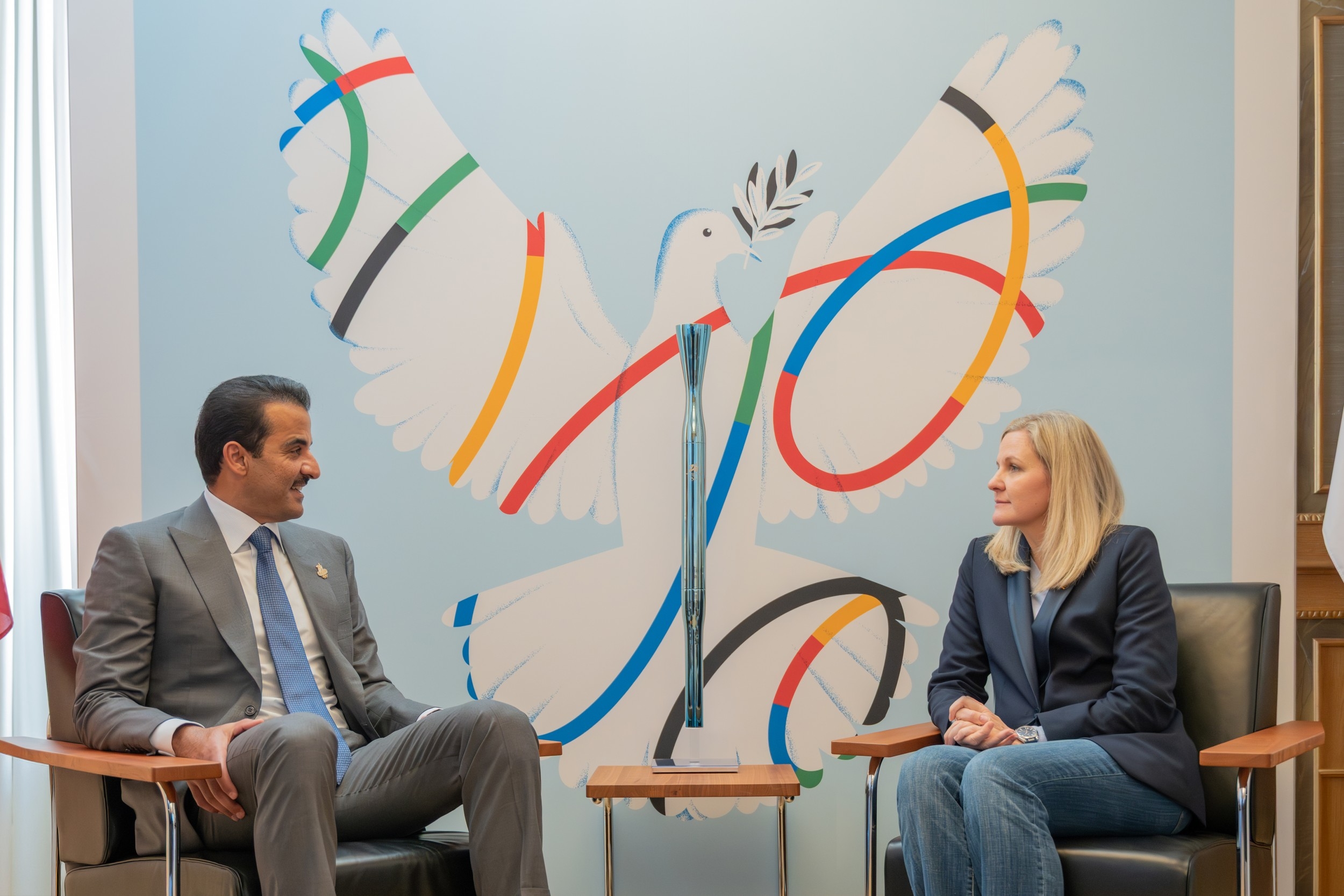 التقى حضرة صاحب السمو الشيخ تميم بن حمد آل ثاني أمير البلاد المفدى، سعادة السيدة كيرستي كوفنتري رئيسة اللجنة الأولمبية الدولية، اليوم، وذلك قبيل افتتاح دورة الألعاب الأولمبية الشتوية “ميلانو كورتينا 2026”، بمدينة ميلان في جمهورية إيطاليا الصديقة.