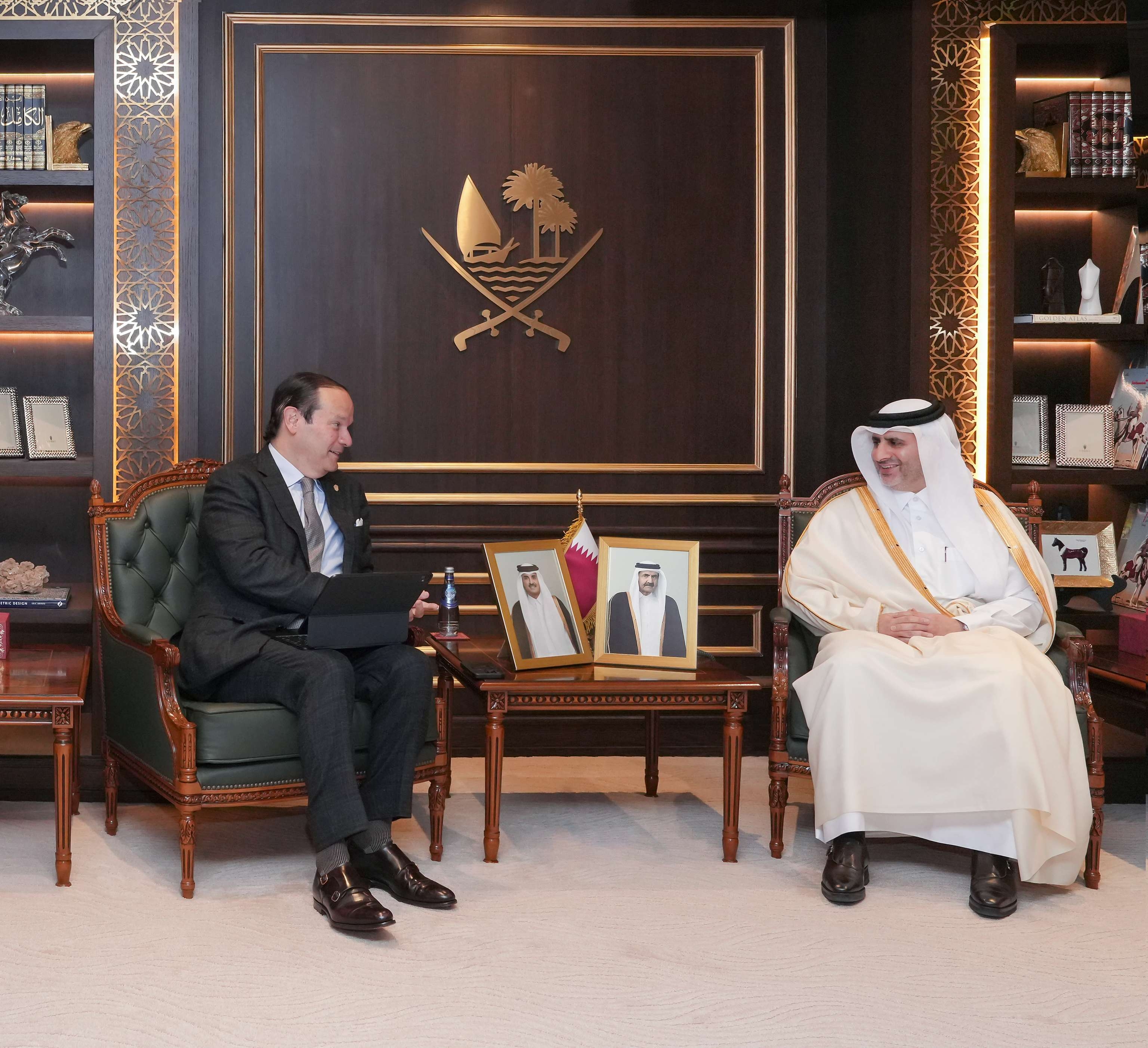 اجتمع سعادة الشيخ بندر بن محمد بن سعود آل ثاني محافظ مصرف قطر المركزي، اليوم، مع سعادة السيد هافيير مارتينيز أتشا وزير العلاقات الخارجية في جمهورية بنما، الذي يزور البلاد حاليا.