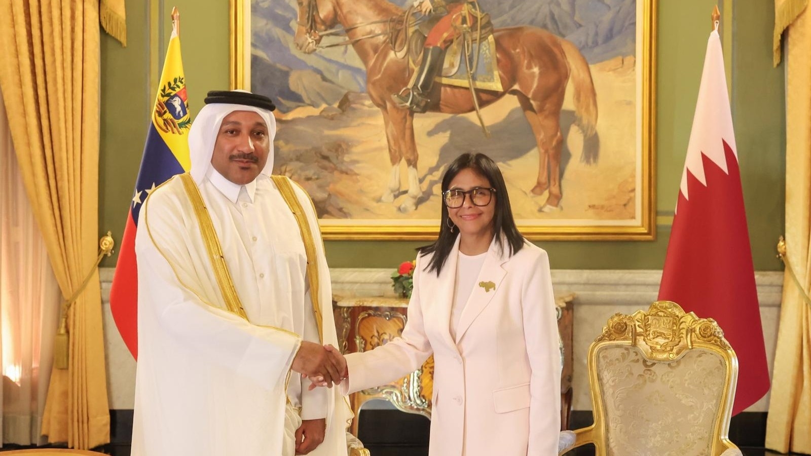 رئيسة فنزويلا بالإنابة تتسلم أوراق اعتماد سفير قطر