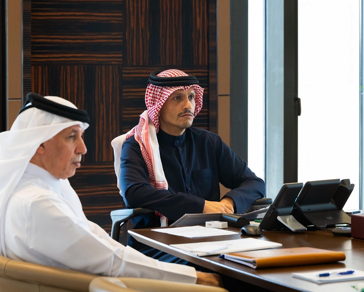 شارك معالي الشيخ محمد بن عبدالرحمن بن جاسم آل ثاني، رئيس مجلس الوزراء وزير الخارجية، في الاجتماع الطارئ الوزاري الخليجي-الأوروبي، لأصحاب السمو والمعالي والسعادة وزراء خارجية دول مجلس التعاون ووزراء الخارجية بدول الاتحاد الأوروبي، والممثلة العليا للاتحاد الأوروبي للشؤون الخارجية والسياسة الأمنية ونائبة رئيس المفوضية الأوروبية، الذي عقد اليوم عبر تقنية (الاتصال المرئي).