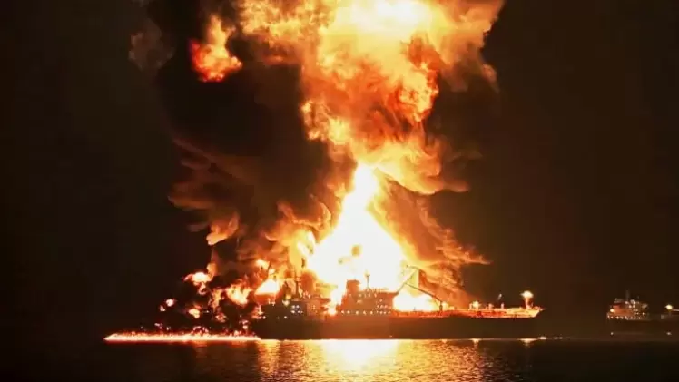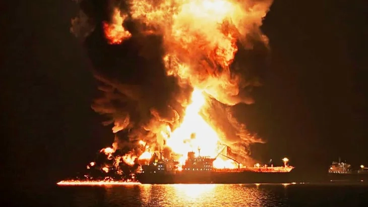 في تطور يعكس تصاعد التوتر العسكري في محيط مضيق هرمز، بث التلفزيون الإيراني، اليوم الخميس، مشاهد قال إنها توثّق لحظة استهداف ناقلة نفط أمريكية بصاروخ بحري تابع للحرس الثوري في مياه الخليج.