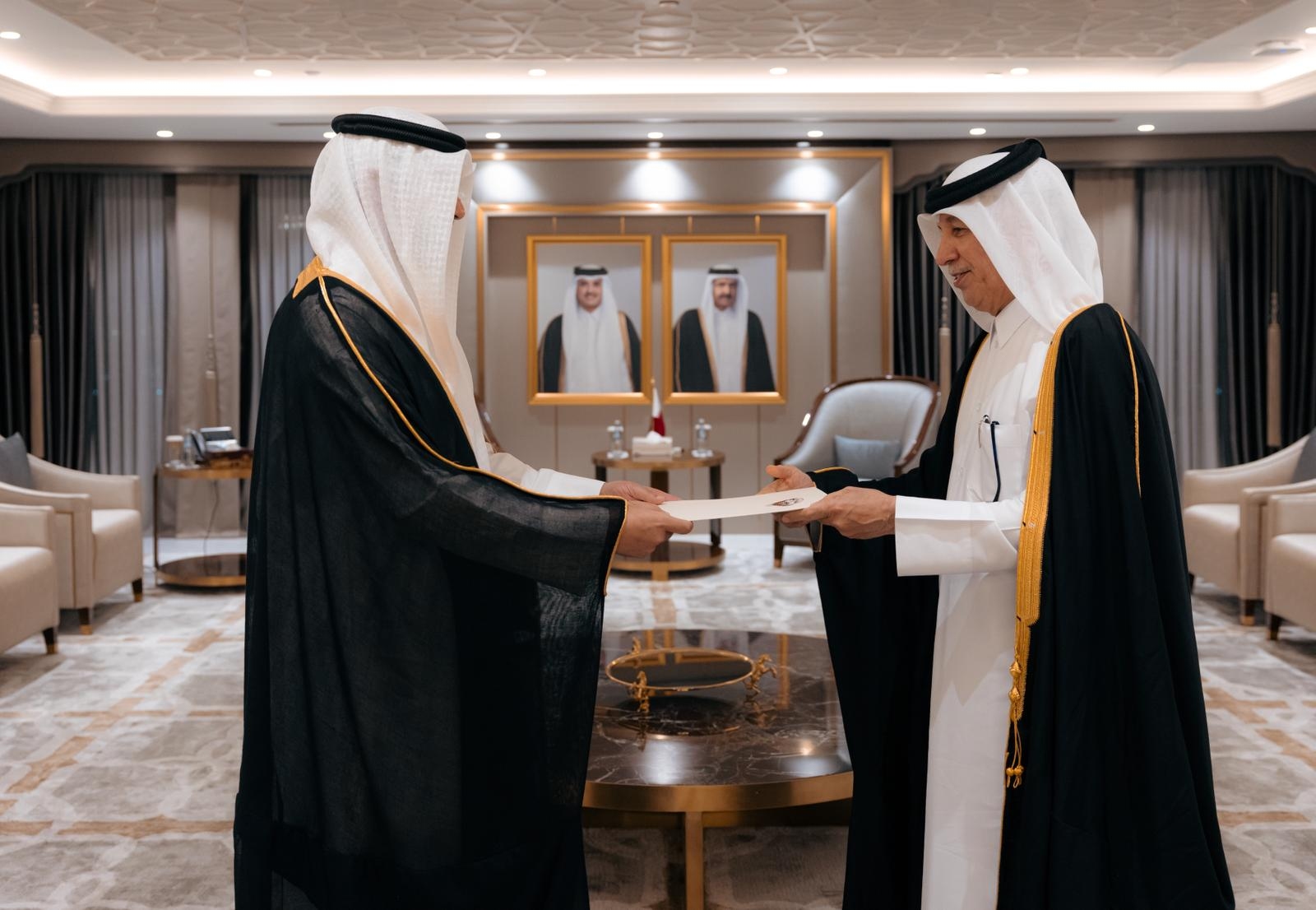 تسلم سعادة السيد سلطان بن سعد المريخي، وزير الدولة للشؤون الخارجية، اليوم، نسخة من أوراق اعتماد سعادة السيد أحمد عبدالرحمن الشريم، سفير دولة الكويت الشقيقة، لدى الدولة.
