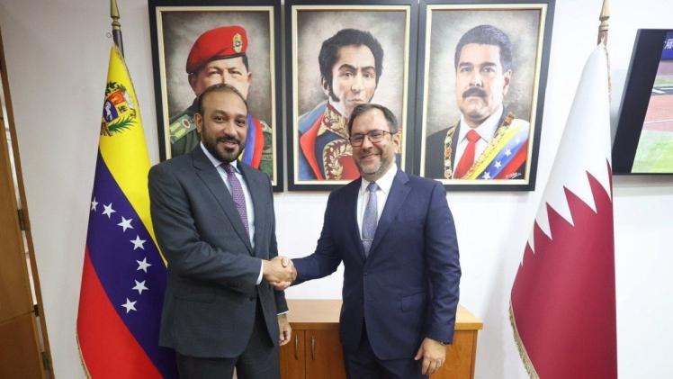 اجتمع سعادة السيد ايفان هيل وزير الخارجية بجمهورية فنزويلا البوليفارية مع سعادة السيد سلمان بن نابت الخليفي سفير دولة قطر لدى فنزويلا.