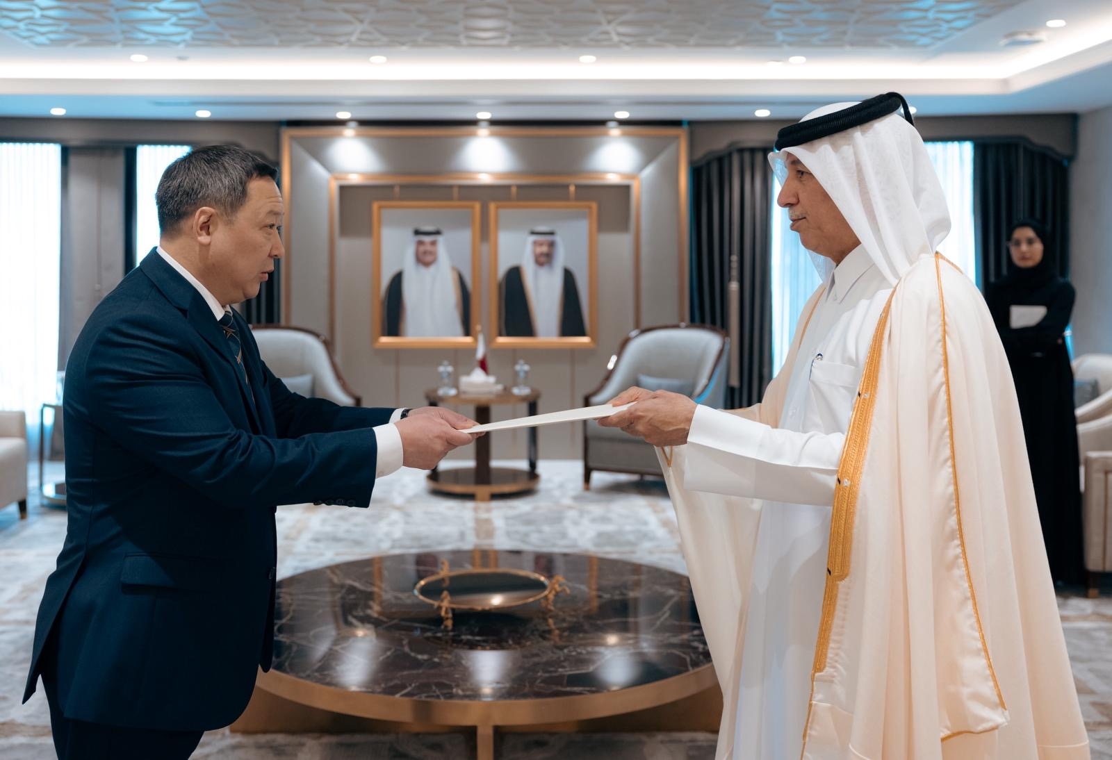 تسلم سعادة السيد سلطان بن سعد المريخي، وزير الدولة للشؤون الخارجية، اليوم، نسخة من أوراق اعتماد سعادة السيد أيبيك تكتوبولوتوف، سفير جمهورية قيرغيزيا، لدى الدولة.