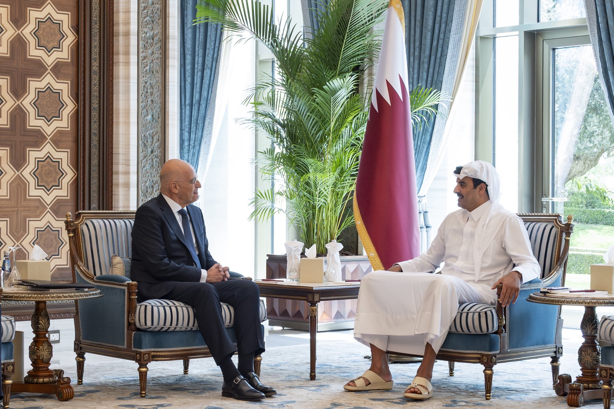 استقبل حضرة صاحب السمو الشيخ تميم بن حمد آل ثاني أمير البلاد المفدى، بمكتبه في قصر لوسيل صباح اليوم، سعادة السيد نيكولاوس جورجيوس ديندياس وزير الدفاع الوطني بجمهورية اليونان.