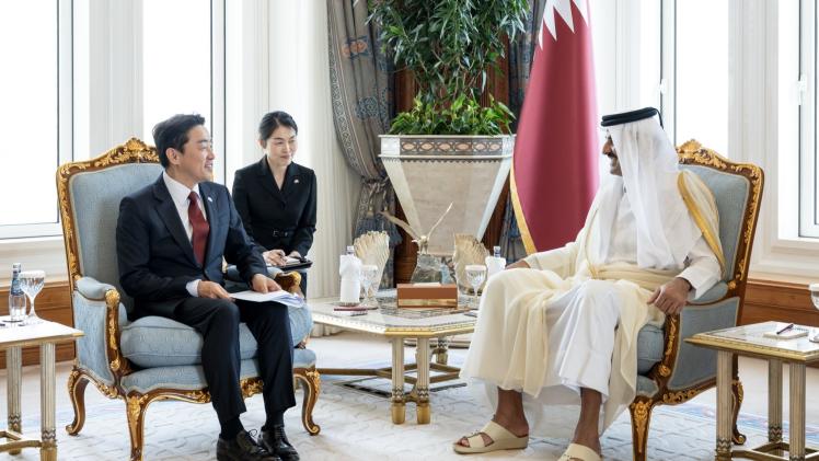 تسلم حضرة صاحب السمو الشيخ تميم بن حمد آل ثاني أمير البلاد المفدى، رسالة خطية من فخامة الرئيس لي جيه ميونغ رئيس جمهورية كوريا الصديقة، تتضمن دعم وتضامن بلاده مع دولة قطر في أعقاب العدوان الإيراني على الدولة وعدد من دول المنطقة، متطلعا فخامته إلى التوصل إلى اتفاق ينهي الأزمة الراهنة.