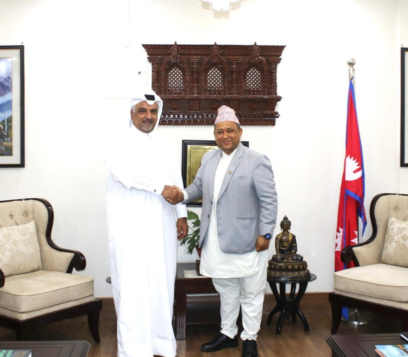 اجتمع سعادة السيد شيشير خانال وزير خارجية نيبال، اليوم، مع سعادة السيد مشعل بن محمد علي الأنصاري سفير دولة قطر لدى نيبال.