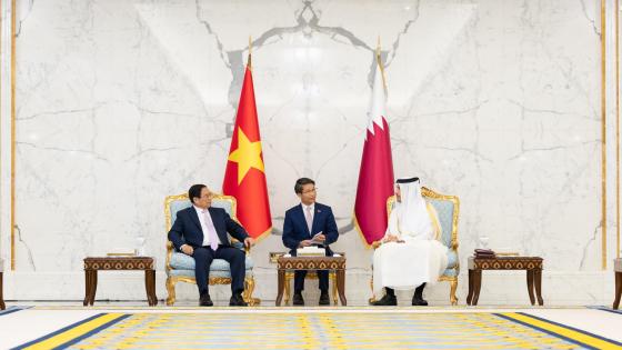 معالي الشيخ محمد بن عبدالرحمن بن جاسم آل ثاني رئيس مجلس الوزراء وزير الخارجية، اليوم، جلسة مباحثات رسمية، مع دولة السيد فام مينه تشينه رئيس وزراء جمهورية فيتنام الاشتراكية، الذي يزور البلاد حاليا.