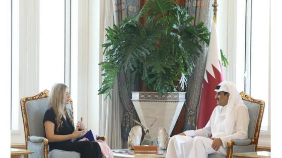 استقبل حضرة صاحب السمو الشيخ تميم بن حمد آل ثاني أمير البلاد المفدى، في مكتبه بالديوان الأميري، صباح اليوم، سعادة السيدة إيفا كايلي نائب رئيس البرلمان الأوروبي، والوفد المرافق، وذلك للسلام على سموه ب