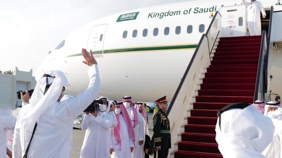 تقدم حضرة صاحب السمو الشيخ تميم بن حمد آل ثاني أمير البلاد المفدى، مودعي أخيه صاحب السمو الملكي الأمير محمد بن سلمان بن عبدالعزيز آل سعود ولي العهد نائب رئيس مجلس الوزراء وزير الدفاع بالمملكة العربية