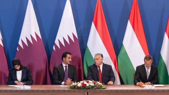 شهد حضرة صاحب السمو الشيخ تميم بن حمد آل ثاني أمير البلاد المفدى، ودولة السيد فيكتور أوربان رئيس وزراء هنغاريا اليوم، مراسم التوقيع على اتفاقية وعدد من مذكرات التفاهم والتعاون بين حكومتي البلدين.