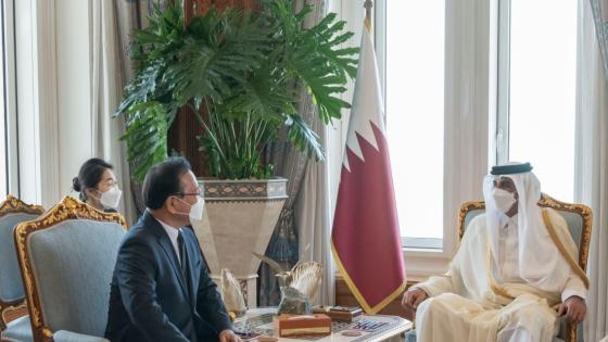 استقبل حضرة صاحب السمو الشيخ تميم بن حمد آل ثاني أمير البلاد المفدى، في مكتبه بالديوان الأميري صباح اليوم، دولة السيد بو كيوم كيم رئيس وزراء جمهورية كوريا والوفد المرافق بمناسبة زيارته للبلاد. جرى