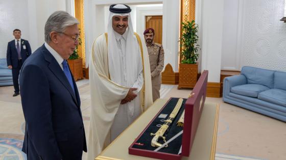 أهدى حضرة صاحب السمو الشيخ تميم بن حمد آل ثاني أمير البلاد المفدى، فخامة الرئيس قاسم جومارت توكاييف رئيس جمهورية كازاخستان الصديقة، اليوم، سيف المؤسس الشيخ جاسم بن محمد بن ثاني، وذلك تجسيدا للعلاقات المتميزة التي تربط البلدين والشعبين الصديقين.
