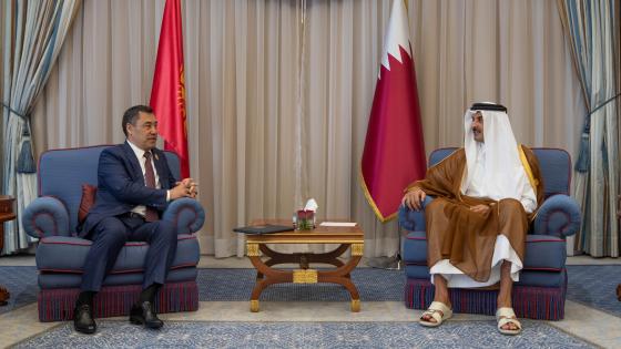استقبل حضرة صاحب السمو الشيخ تميم بن حمد آل ثاني أمير البلاد المفدى، فخامة الرئيس صادر جباروف رئيس جمهورية قيرغيزيا الصديقة، بمقر إقامة سموه بفندق الريتز كارلتون في مدينة جدة اليوم، وذلك على هامش انعقاد القمة الخليجية ودول آسيا الوسطى.