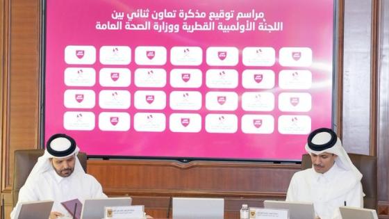 وقعت اللجنة الأولمبية القطرية اليوم، مذكرة تفاهم مع وزارة الصحة العامة بغرض نشر الوعي حول أهمية ممارسة النشاط البدني المنتظم بين أفراد المجتمع وجعل الرياضة نمطا لحياة أكثر صحة.